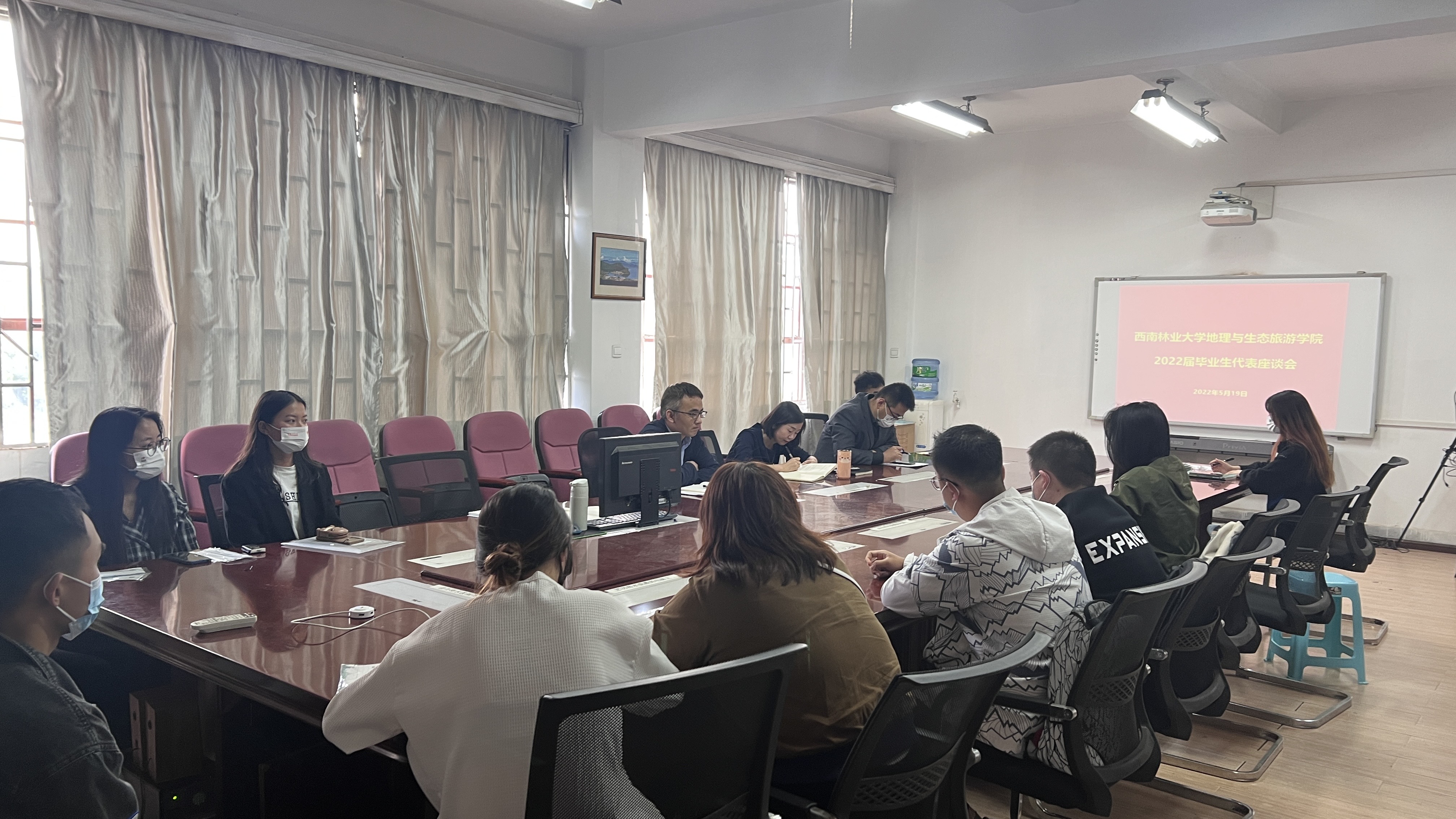 5月19日,地理与生态旅游学院召开了2022届毕业生代表座谈会。学院副院长程希平、副书记张卓亚、资源利用系系主任姬永杰、就业联络员王未、2022届本科和硕士研究生毕业生代表参加了此次座谈会。会议由程希平主持。