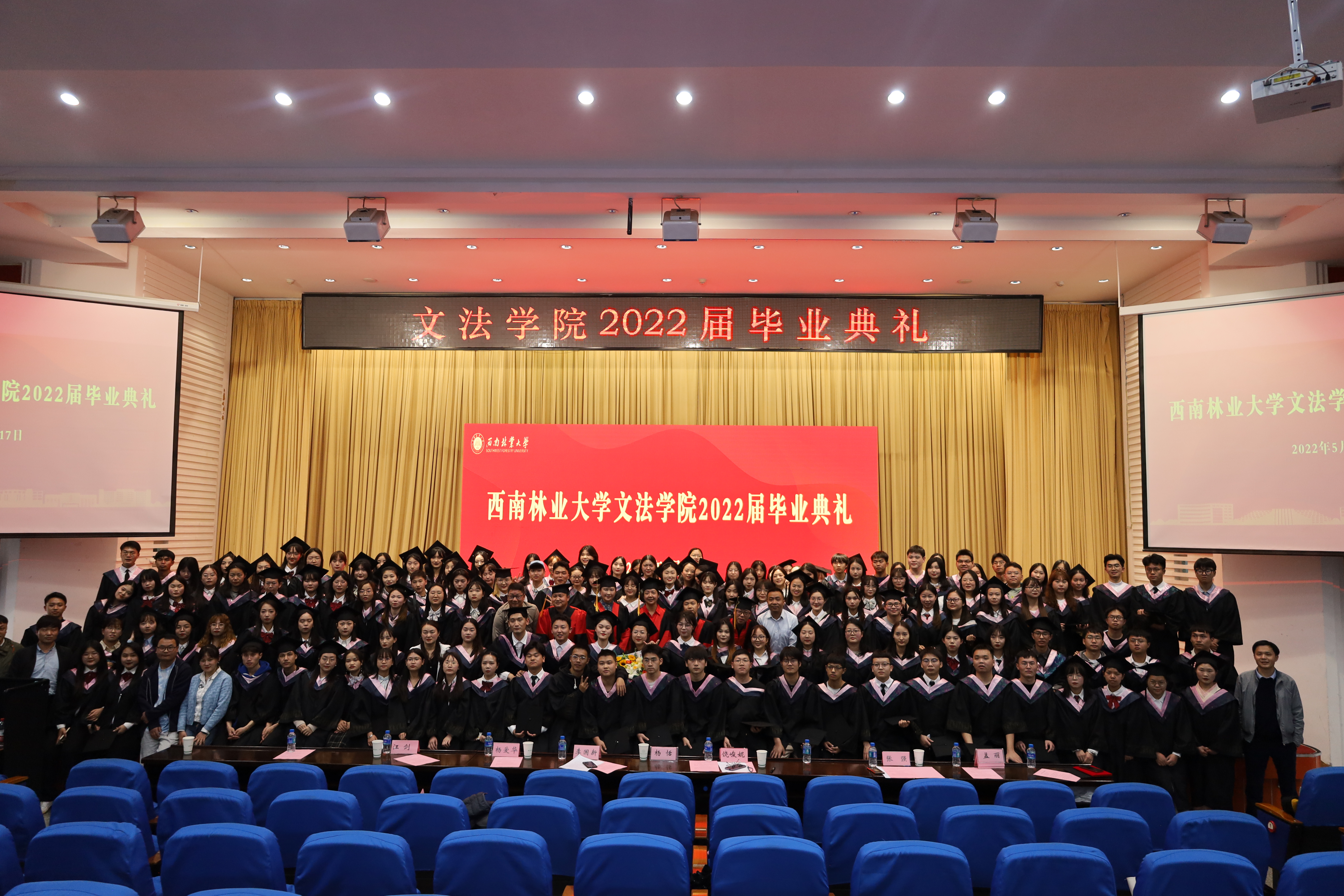 李国新在致辞中表示大学四年不仅仅有同学们的青春岁月,更多的是同学们的成长,希望同学们在往后的日子里,光芒万丈,熠熠生辉。张志雄老师代表全院教师,以《我们这一届文法学子的青春礼歌》为题给毕业生们送上了美好祝福和期待。2022届毕业生代表谭丽娟、马菲菲、陆囿芬在发言中回忆起大学生活的过往,感恩老师们的悉心教导。之后师生共同观看《再一次》毕业纪念短片。