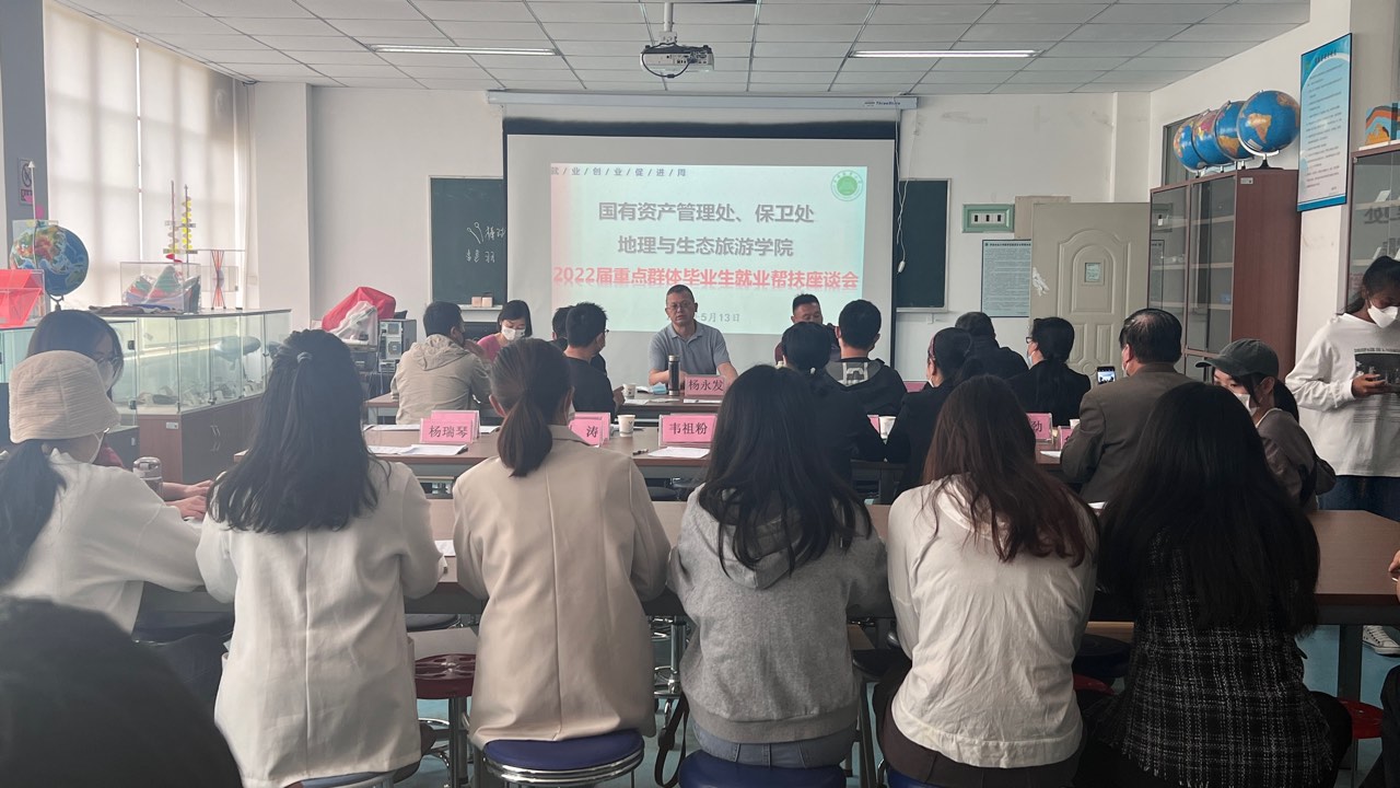 为落实《kaiyun体育网页登录入口 2022 届毕业生就业指导服务工作“三好三实”责任体系行动方案》要求,实现职能部门联系帮扶毕业生就业工作全覆盖,5月13日,召开国有资产管理处、保卫处联系帮扶地理与生态旅游学院2022届重点群体毕业生就业座谈会。国有资产管理处处长谢涌、副处长曾睿、何超,保卫处副处长王富林、高鹏,我院党委书记杨永发、党委副书记张卓亚、和2022届重点群体毕业生参加此次会议。会议由就业联络员王未主持。