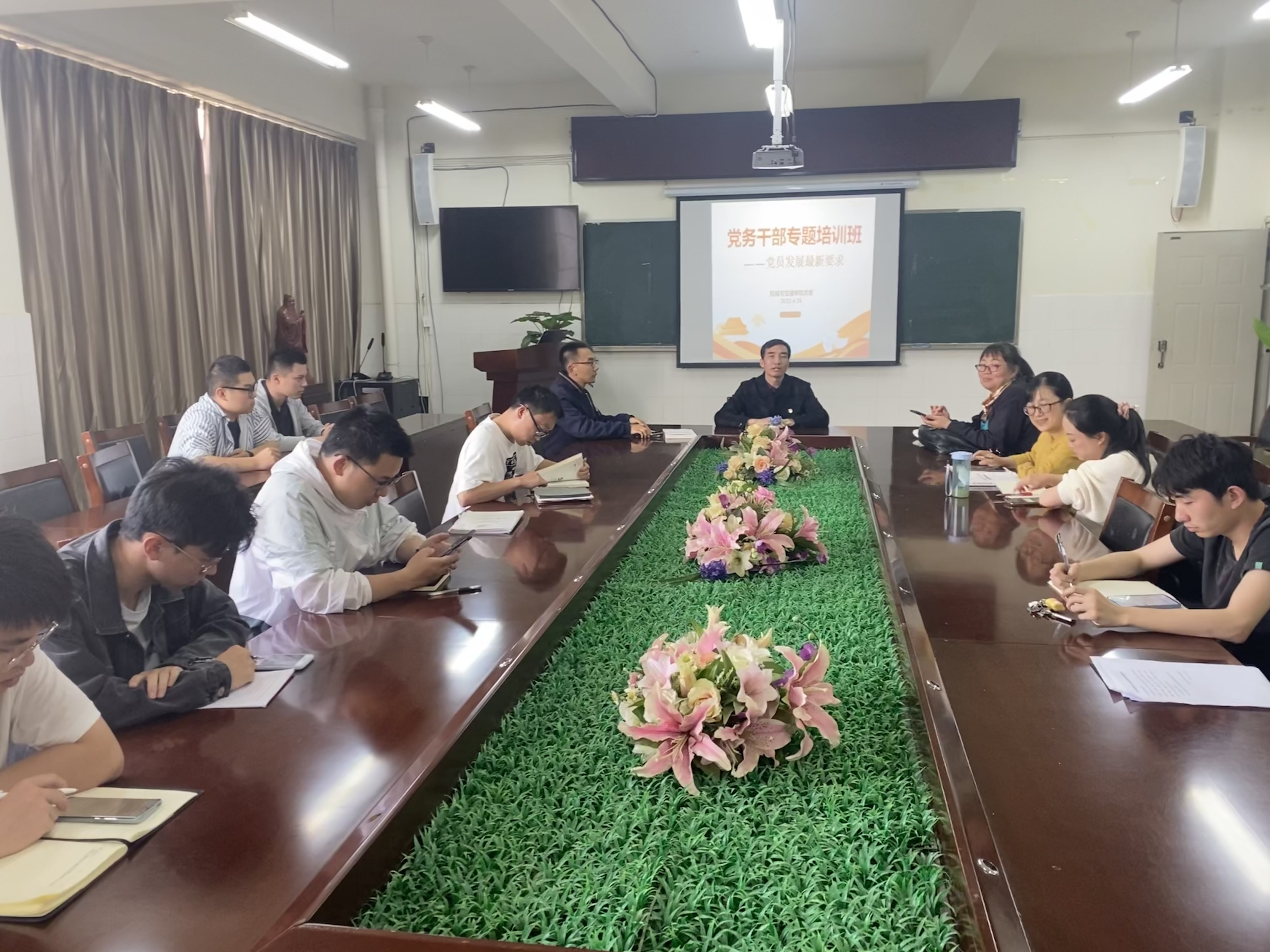 4月26日,机械与交通学院开展党务干部专题培训,专题研讨党员发展有关工作。学院各党支部书记、支委参加培训。