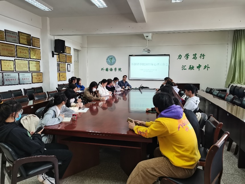 为更好了解各班学生心理情况、做好学院心理管理工作、推进作风革命,4月19日,外国语学院召开心理工作会议。院心理工作负责人王光铭与各班心理委员参加会议。