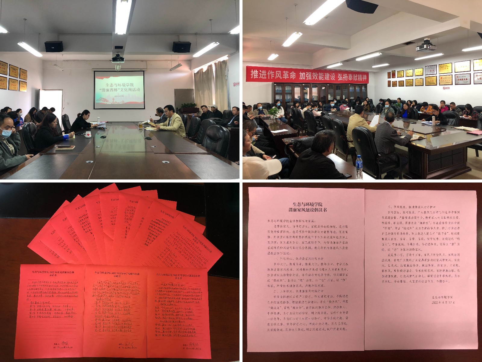 4月12日,学院举办启动仪式并开展警示教育及师德师风教育。会上学院党委副书记(主持工作)刘建祥传达了学校《2022年度“清廉kaiyun体育”文化周活动实施方案》,通报了云南省近期查处的教育系统违法违纪案例,集中学习了《新时代高校教师职业行为十项准则》、党员教师及领导干部认真抄写了《中国共产党廉洁自律准则》,做出廉洁自律承诺。会议还向全院教职工发放了《生态与环境学院清廉家风建设倡议书》,倡导营造廉洁齐家的家庭环境和风清气正的社会氛围。
