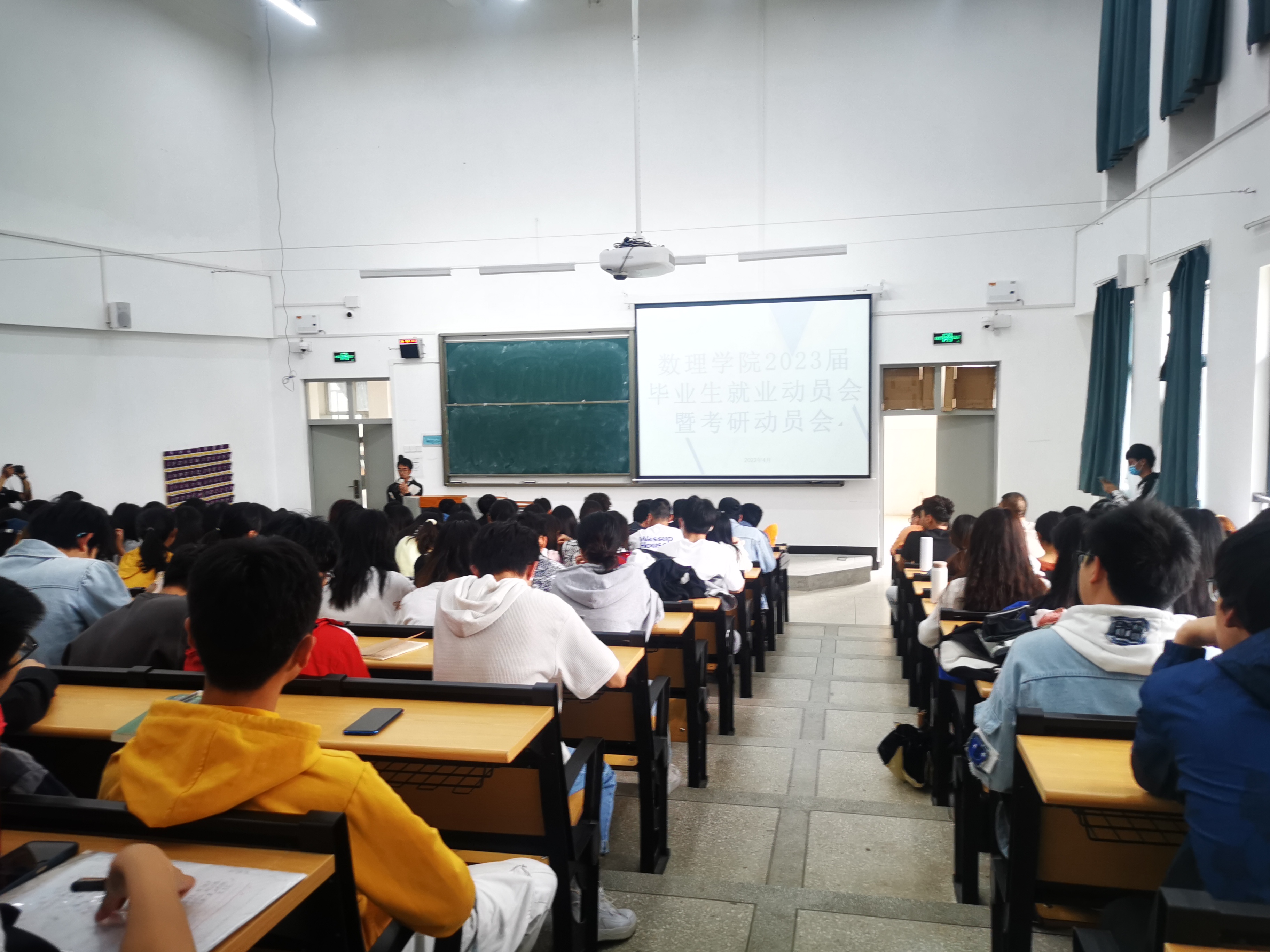 4月15日下午,数理学院召开2023届毕业生就业动员会暨考研分享会,学院党委副书记谢爽、就业联络员、7名2018级考研及就业成功学生代表、2023届全体毕业生参加了此次会议。