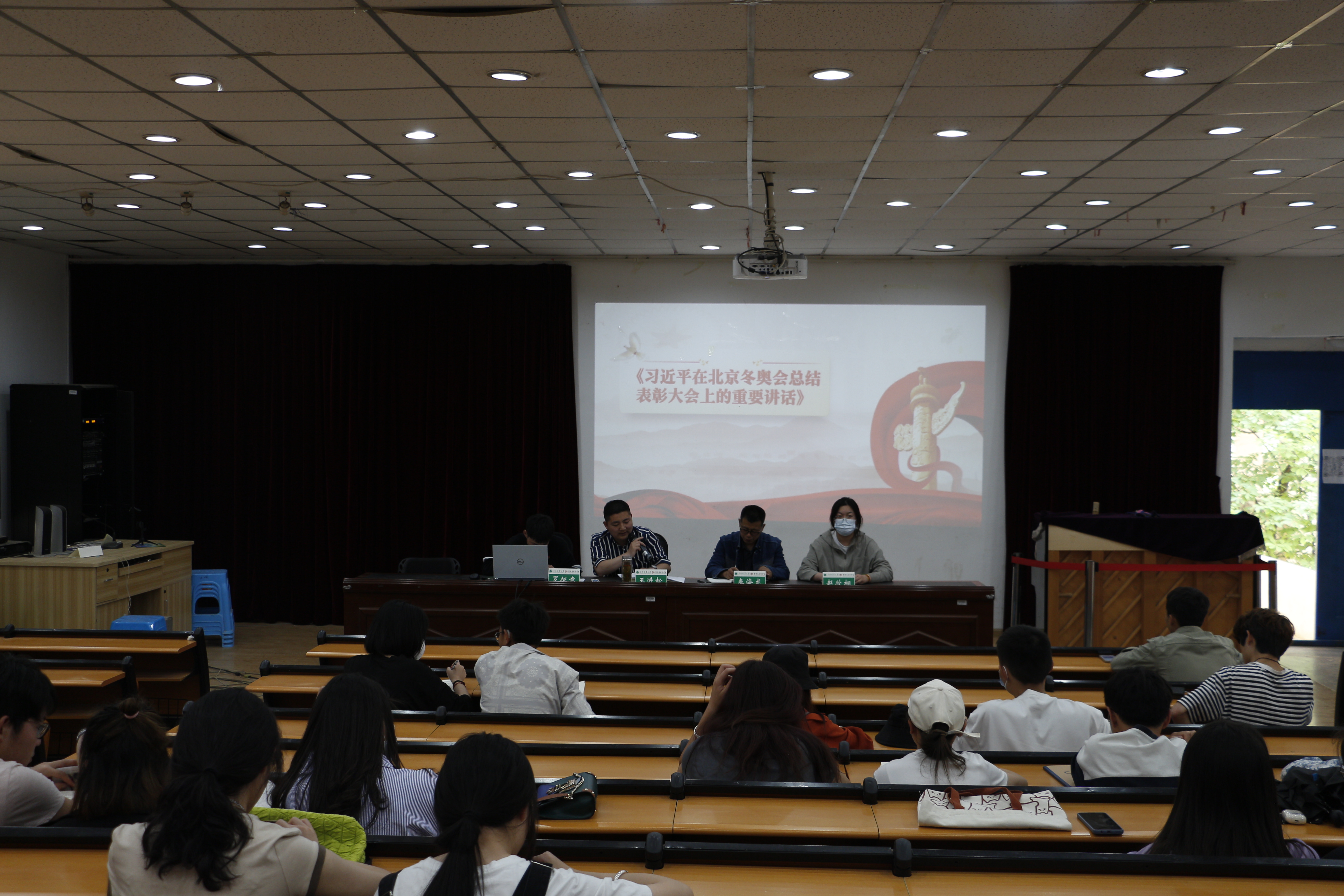会上,王进松带领大家学习《习近平在北京冬奥会总结表彰大会上的重要讲话》。会议指出,广大冬奥会、冬残奥会的参与者们,用辛勤付出、坚强毅力、巨大勇气,以强烈的责任感、使命感、荣誉感,出色完成了各项工作任务,创造了无愧于祖国、无愧于人民、无愧于时代的业绩。学生干部更应该胸怀大局、自信开放、迎难而上、追求卓越、共创未来,展现蓬勃向上的中国青年形象。秦海龙就疫情防控、健康打卡、青年大学习、防诈防骗、宿舍卫生、宿舍违纪问题、互联网+大赛、校园十大歌手等工作做了安排。