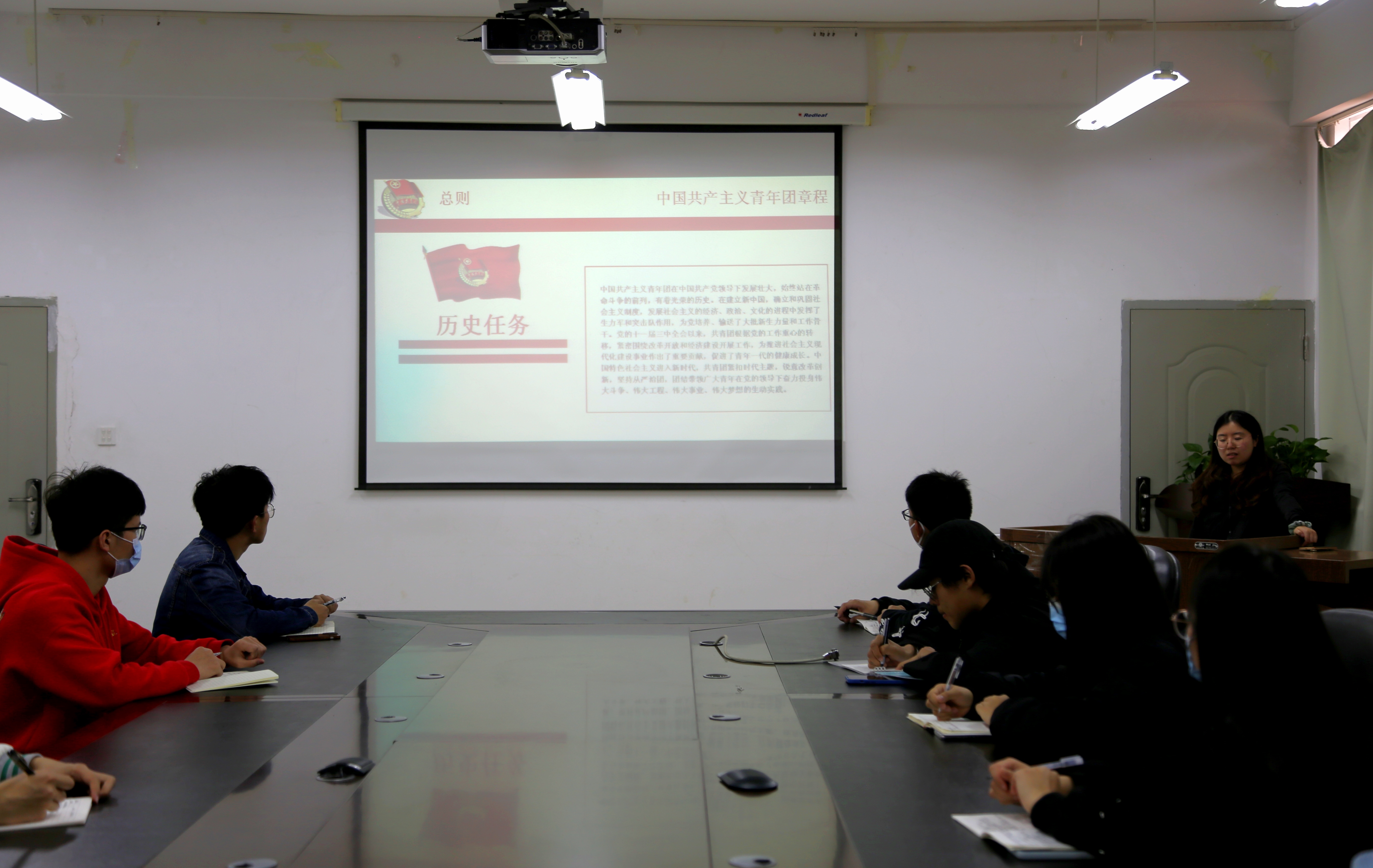 院团委书记夏菁领学《中国共产主义青年团章》,并指出入团积极分子们应以一名合格团员的标准要求自己,坚决拥护共产党的领导,遵守团的章程,认真履行团员的义务,将团课所学内化于心、外化于行,在今后的学习生活中更好地发挥团员的先锋带头作用。