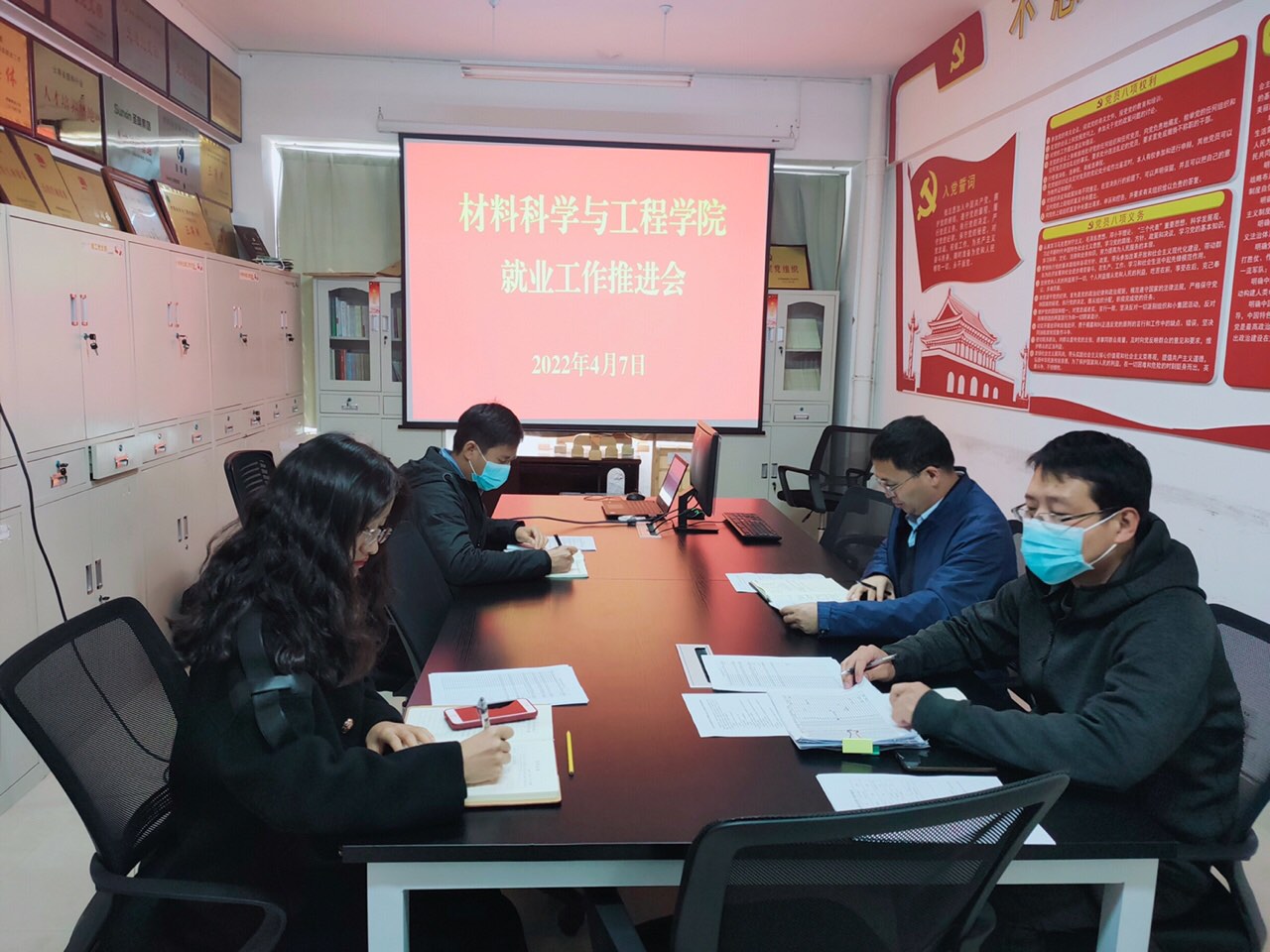 4月7日,材料科学与工程学院召开了2022届毕业生就业工作推进会。学院党委书记张武先、党委副书记孙浩、研究生辅导员黄明泉、就业联络人王兆燕参加了会议。会议由孙浩主持。