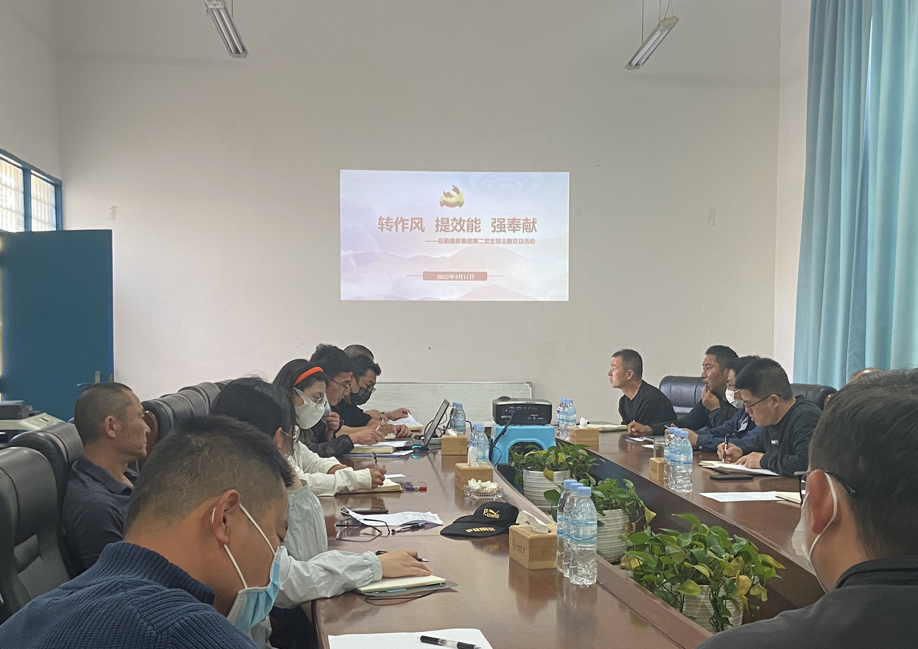 各支部以“改作风、提效能、强奉献”为依托开展主题党日。3月23日第一党支部开展疫情防控常态化下的食堂秩序维护工作,督促进出食堂师生佩戴好口罩,进入食堂后按要求间隔排队取餐,分散就坐用餐。3月25日第二党支部对后勤经营性商铺是否存在抬高销售价格、售卖过期食品进行专项检查。3月31日,第三党支部党员主动作为,组织保卫处、基建处、后勤服务集团开展核酸检测工作。