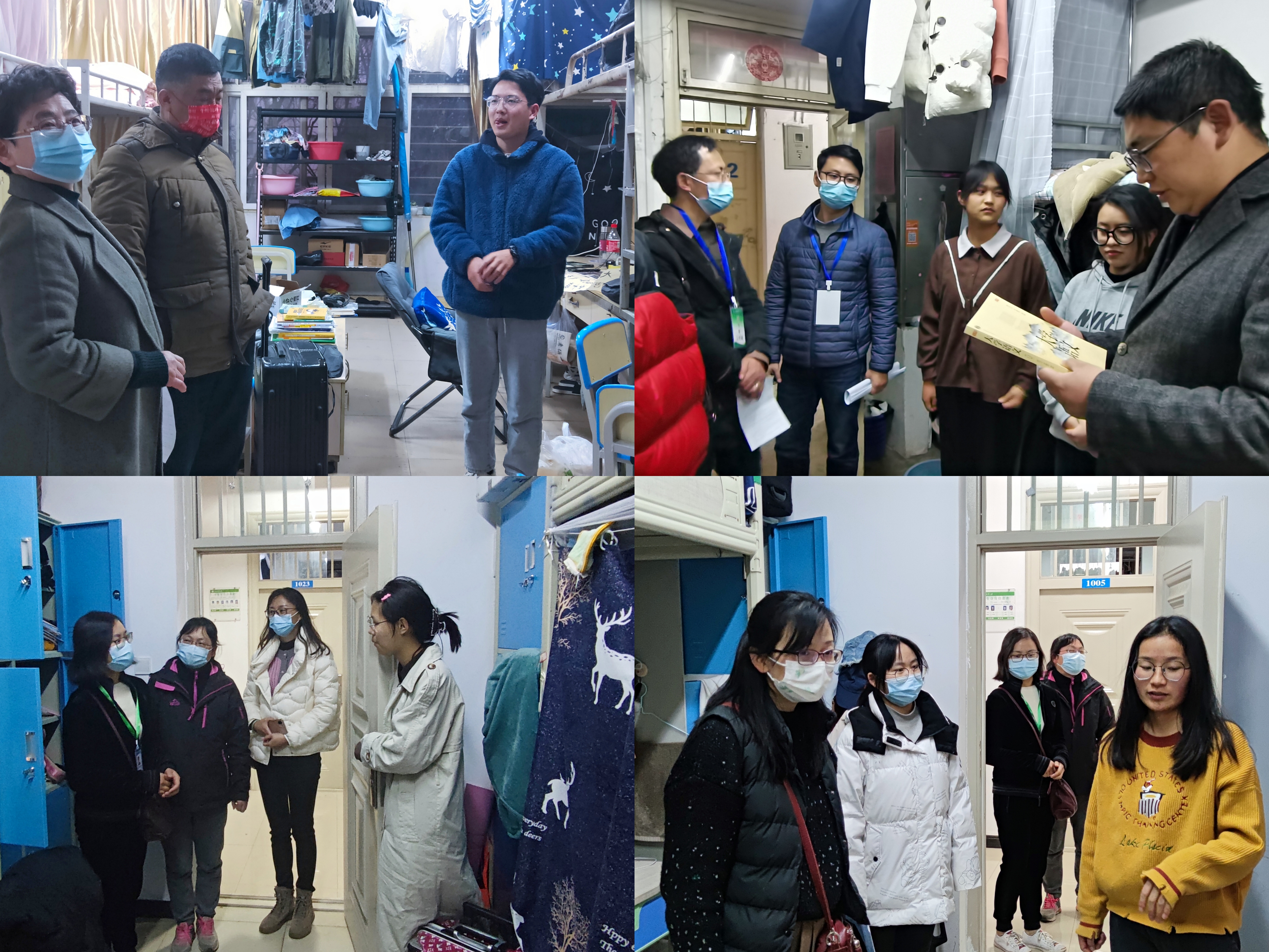 为了进一步落实教育厅、学校2022年春季学期开学相关工作要求,了解学院全体学生返校和开学准备情况。2月27日,党委书记姜丽红、学院院长李秀梅、党委副书记李法营、副院长饶耀平分别带领班主任、辅导员、党员学生干部深入学生宿舍走访看望。