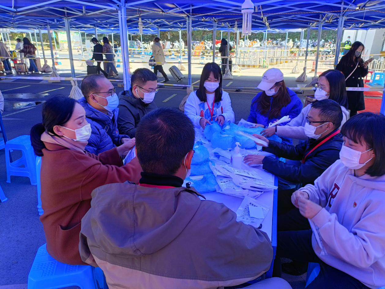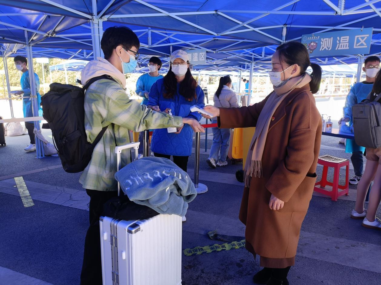 在职能部门党委第16党支部书记、校团委书记杨欣的带领下,党支部全体党员与150余名大学生志愿者共同为返校同学们提供消毒杀菌、更换口罩、搬运行李、查验健康码等服务,用实际行动诠释初心和使命,用真心筑牢校园安全防护墙,为全校学生安全返校保驾护航。