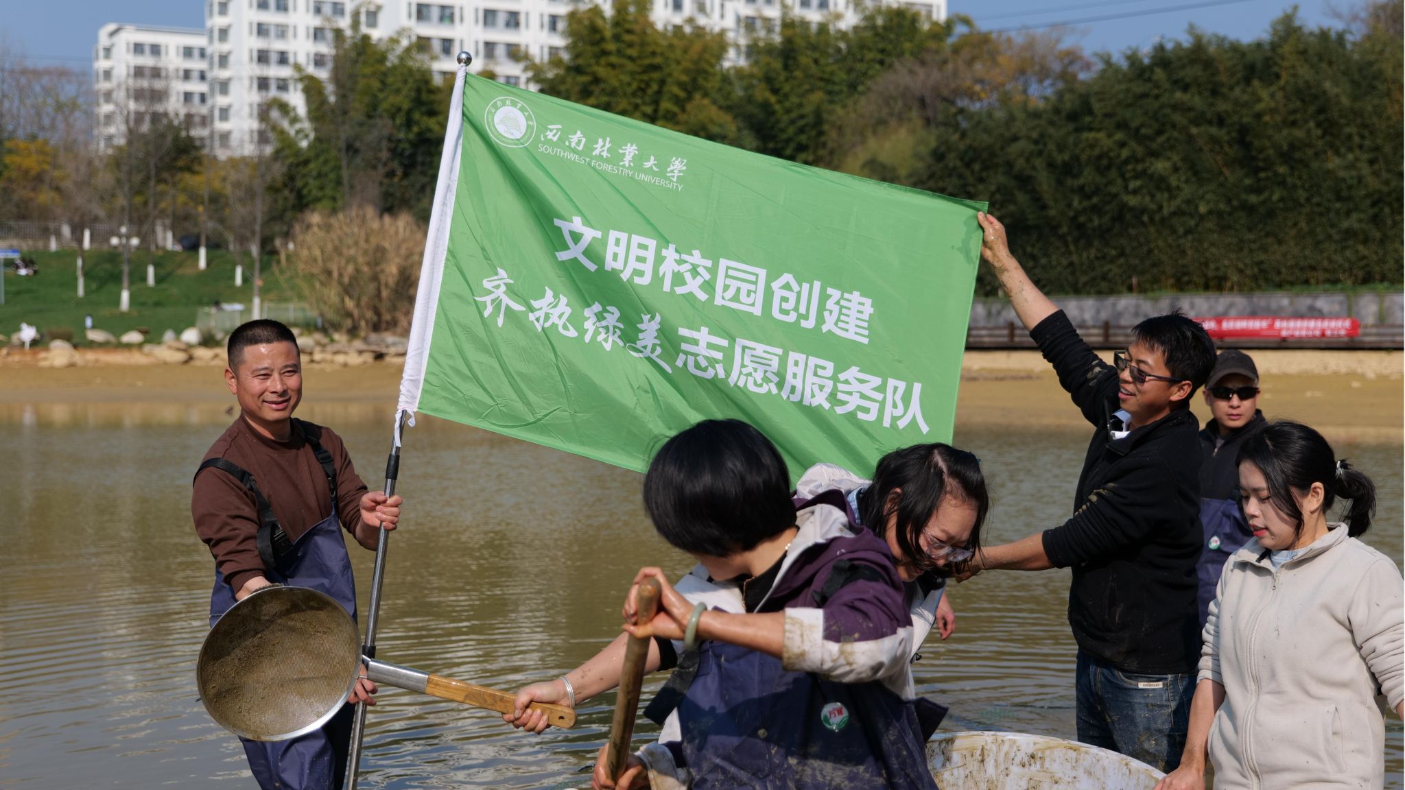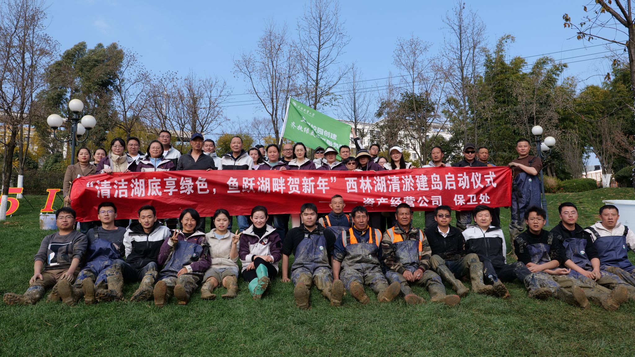 1月5日,资产经营公司在kaiyun体育湖开展“清洁湖底享绿色,鱼跃湖畔贺新年”清淤建岛暨主题党日活动。