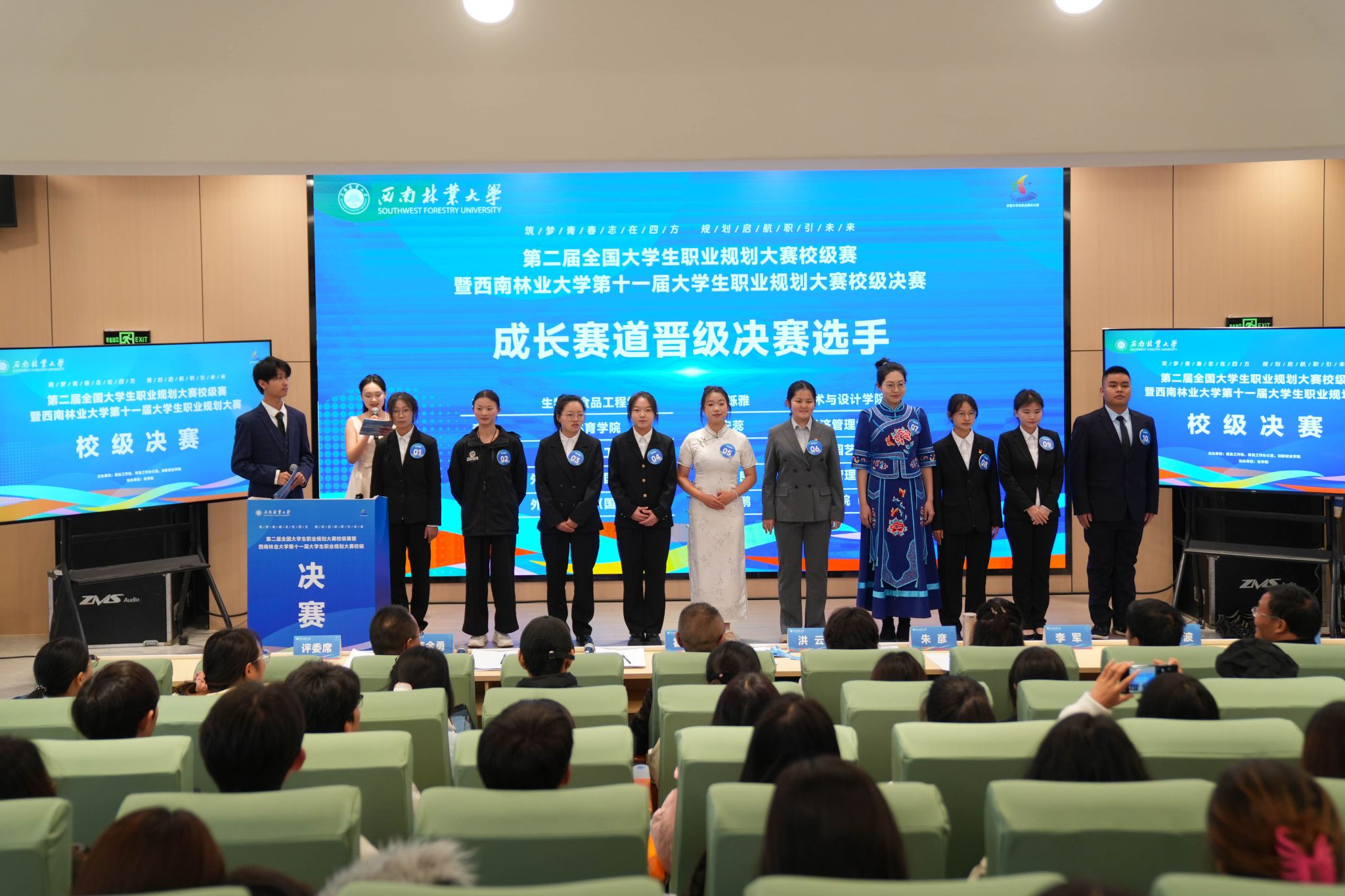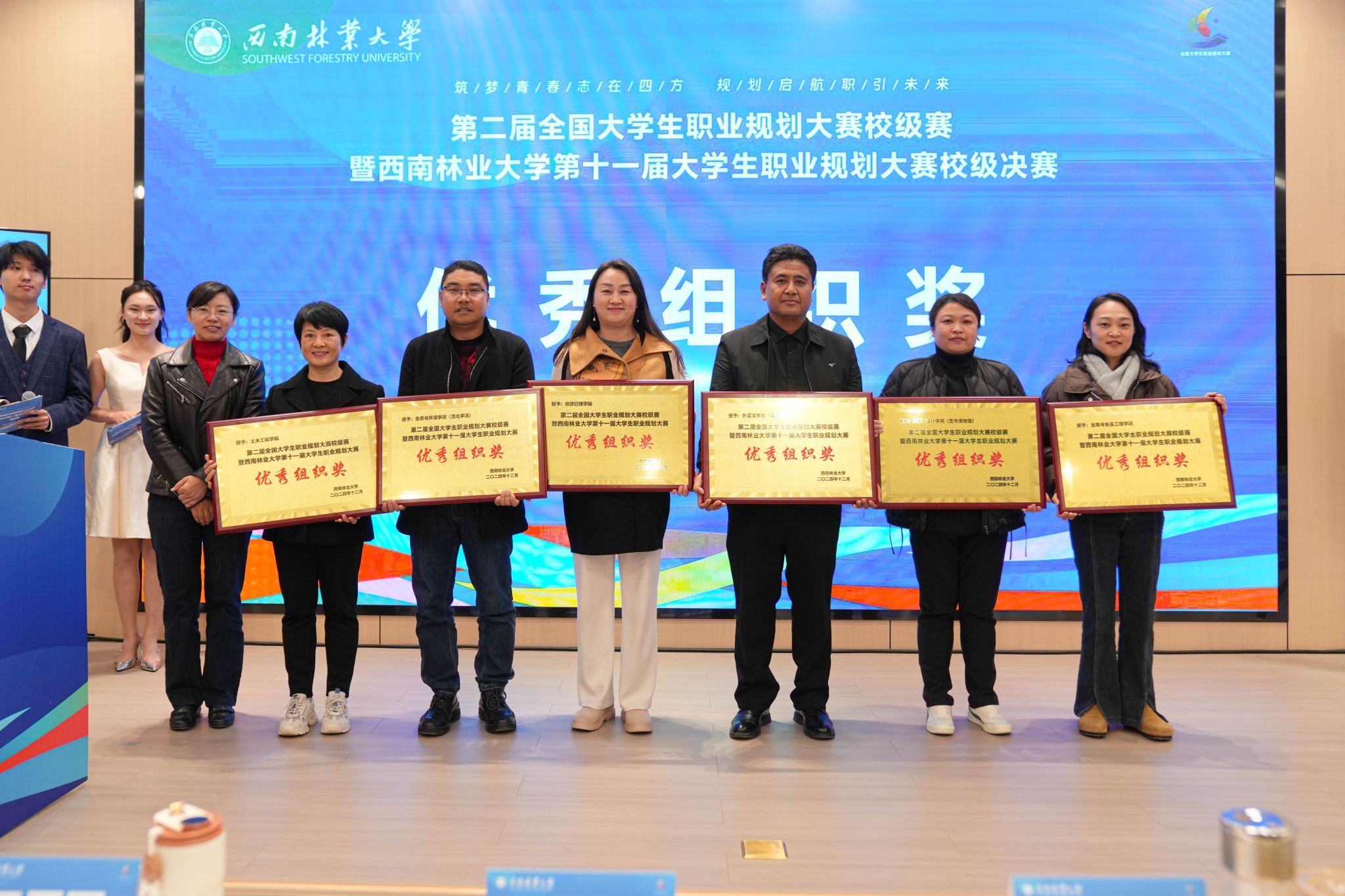 本次大赛旨在深入贯彻上级部门关于做好高校毕业生就业工作的决策部署,落实《云南省教育厅等六部门关于举办第二届全国大学生职业规划大赛云南省赛的通知》的文件要求,历时1个多月,经过广泛宣传动员,全校共计15000余名学生报名参赛,经过院赛比拼、校级复赛网络评审,共有31名学生晋级校级决赛。大赛分为成长赛道和就业赛道,经过激烈角逐,经济管理学院李春良,外国语学院(国际学院)赵瑞欣,材料与化学工程学院万现科,经济管理学院安蕊四位同学获成长赛道金奖;土木工程学院杨锡坤、林学院(亚太林学院)何技韩、材料与化学工程学院秦莉、艺术与设计学院(艺术博物馆)杨蕊应四位同学获就业赛道(本科生组)金奖;经济管理学院李家璇、赵宁,林学院(亚太林学院)付忠洪、材料与化学工程学院卢彬四位同学获就业赛道(研究生组)金奖。