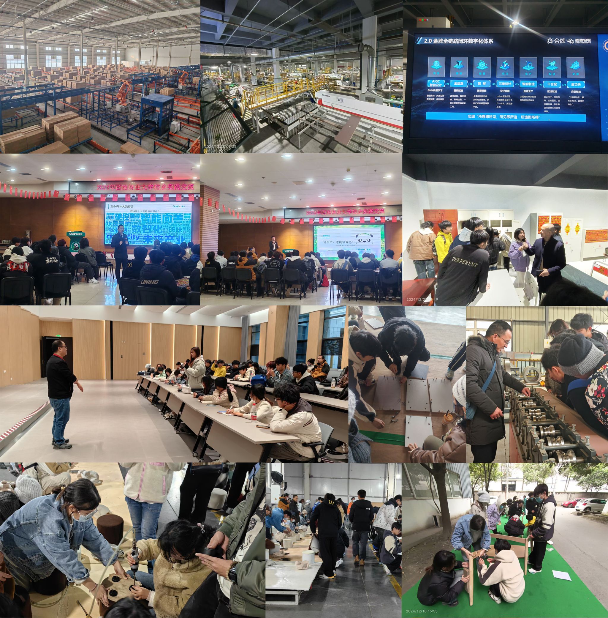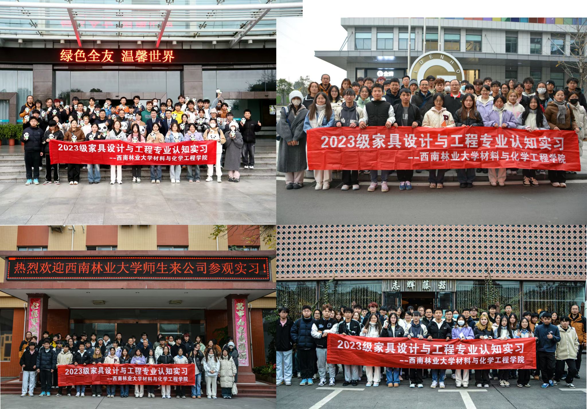 12月15日至22日,材料与化学工程学院2023级家具设计与工程专业42名本科生前往成都开展了为期8天的专业认知实习。实习内容涵盖了产品营销策划与设计、原材料加工、智能制造、智能仓储、质量检测、现代物流和人居环境等方面,使同学们全面了解家具产业的各个环节,提供了理论与实践相结合的学习平台。