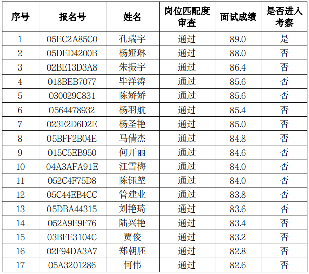根据《云南省事业单位公开招聘工作人员办法》(云人社发〔2016〕182号)、《kaiyun体育网页登录入口公开招聘1名编外实验室安全管理员的公告》等有关规定,经过网络报名、资格审核、岗位匹配度审查、技能面试考核等程序,按照招聘人数及面试成绩,等额确定1人为拟考察人员。现将有关事宜公告如下: