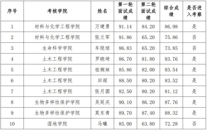 一、进入考察人员名单
