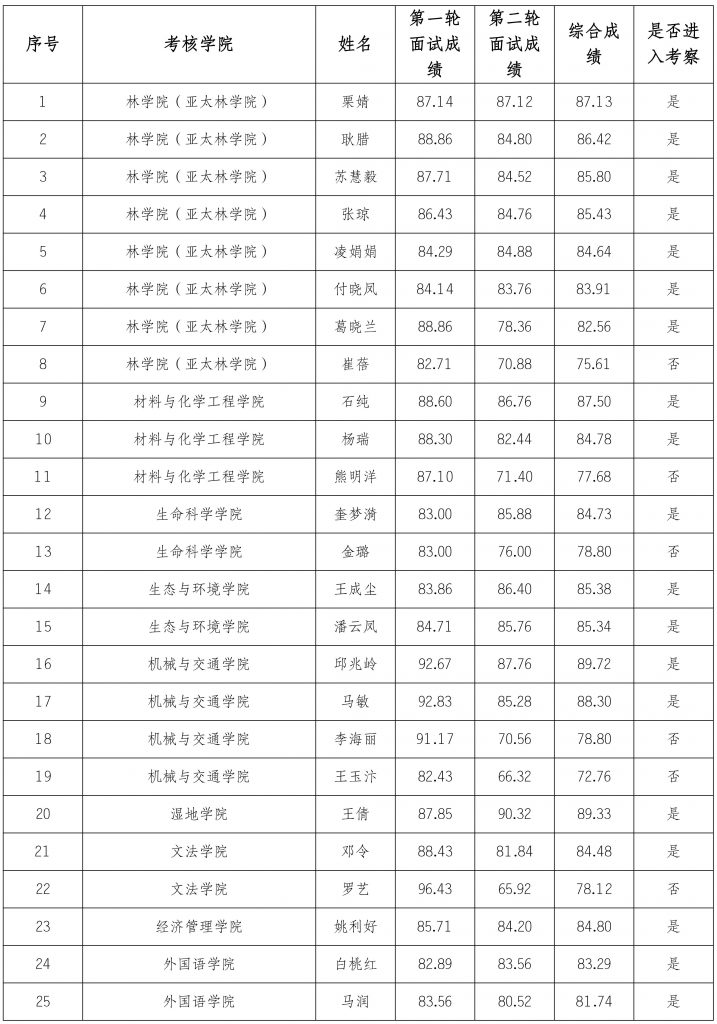 一、进入考察人员名单