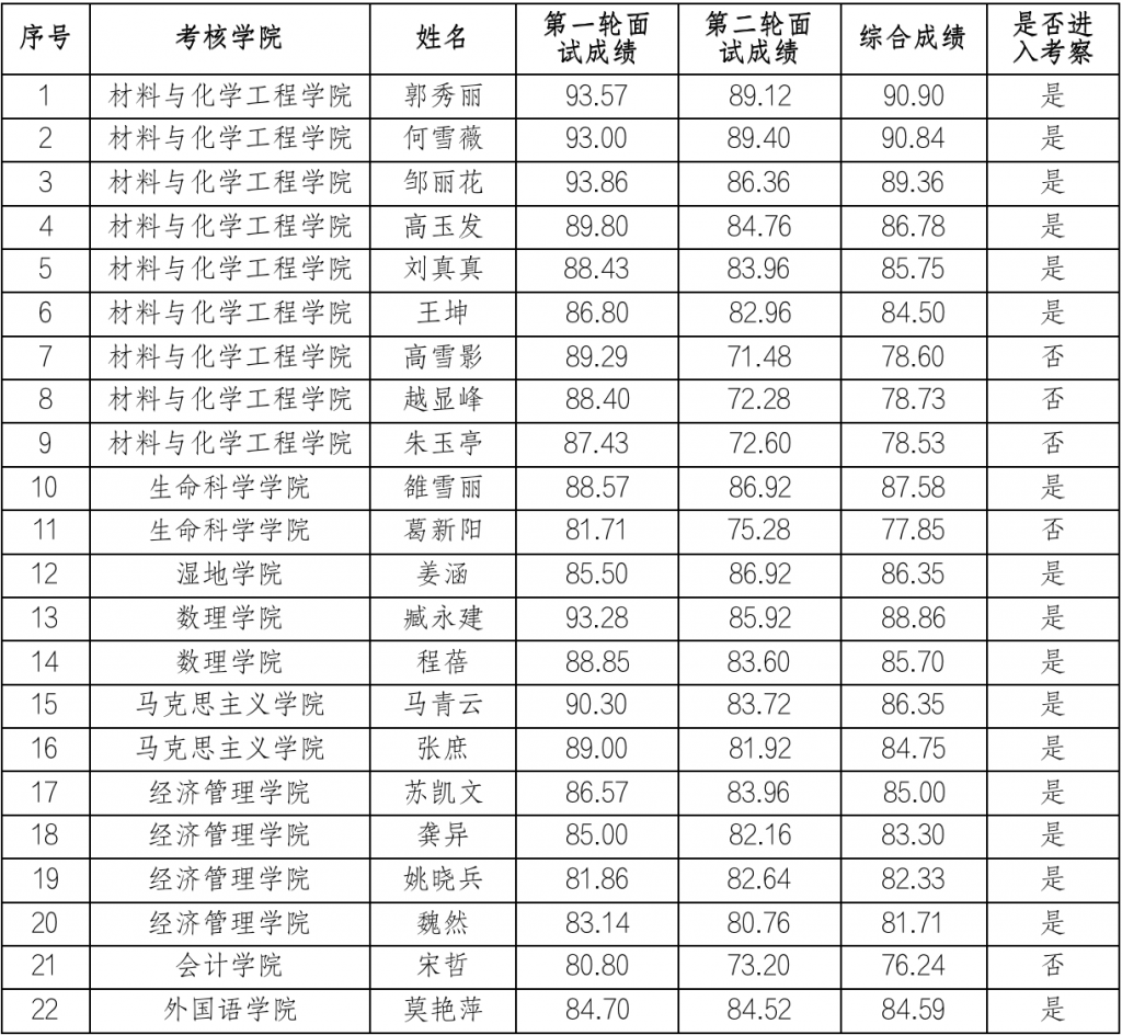 一、进入考察人员名单