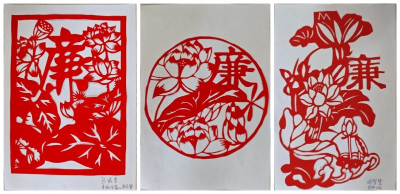 活动以莲花、竹子等象征廉洁意义的植物为主题元素,现场教授学生剪纸、刻纸。活动过程中,同学们细细描摹、精心剪裁,创作出一幅幅构图巧妙、立意深远的“莲花”“风清气正”“廉”等剪纸作品,传递以廉为荣、以廉为美的正能量。