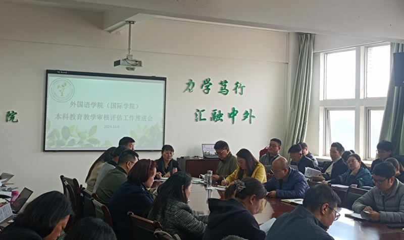 饶耀平副院长带领全院教职工在会上认真研读和学习了《本科教育教学深刻评估应知应会》,解读了本科教育教学审核评估的各项指标及审核重点。以《外国语学院(国际学院)本科教育教学审核评估《自评报告》编制工作方案)》为基础,对自评报告的编制工作作了详细安排,做到责任明确,各司其职,通力协作。(来源:外国语学院(国际学院)/文/图:莫珍珍/审核:饶耀平/初审:张冉/复审:冷瑾/终审:柏顺文/责任编辑:张冉)