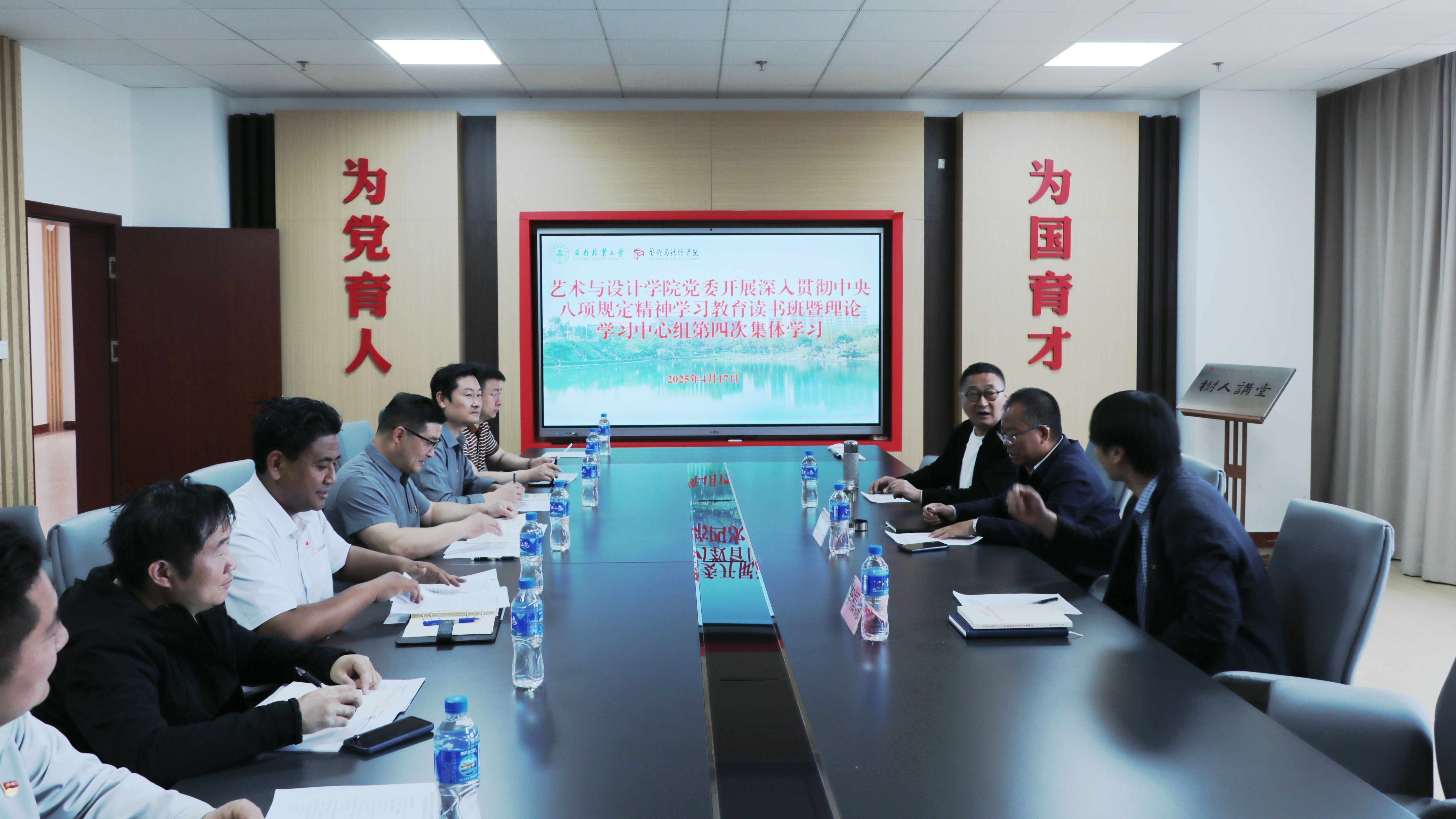 4月17日,艺术与设计学院党委开展深入贯彻中央八项规定精神学习教育读书班暨理论学习中心组(扩大)第四次集体学习。校党委副书记魏宏,马克思主义学院党委书记李福源、艺术与设计学院(艺术博物馆)院长(馆长)李生森列席会议。学院党委理论学习中心组全体成员、党支部书记参加学习。会议由学院党委书记张德国主持。